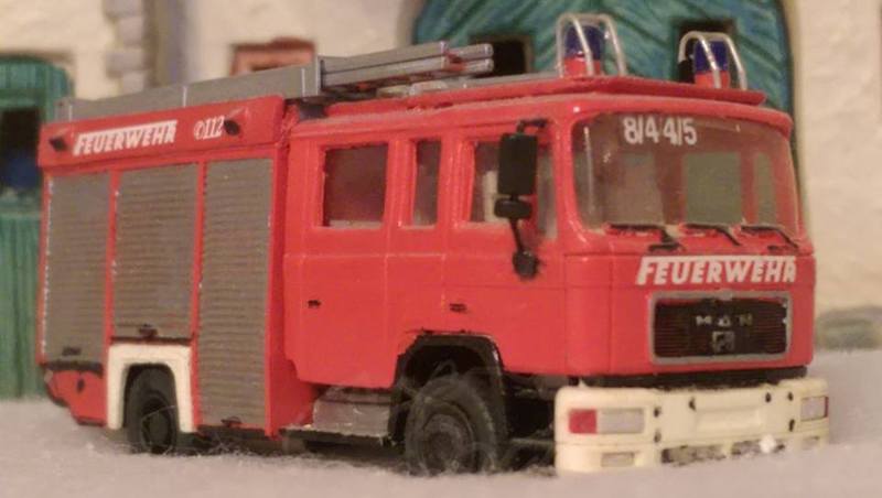 Mein im Jahre 1999 nach realem Vorbild (LF 16/12, Löschzug Sindorf) erstes selbstgebautes Modell im Maßstab 1:87. Vor 20 Jahren hatte man halt weder durch Internet noch durch Modellfirmen die Möglichkeit zum Beschaffen von passenden Ersatzteilen. Meiner Meinung nach trotzdem ein gelungenes Modell ;-)